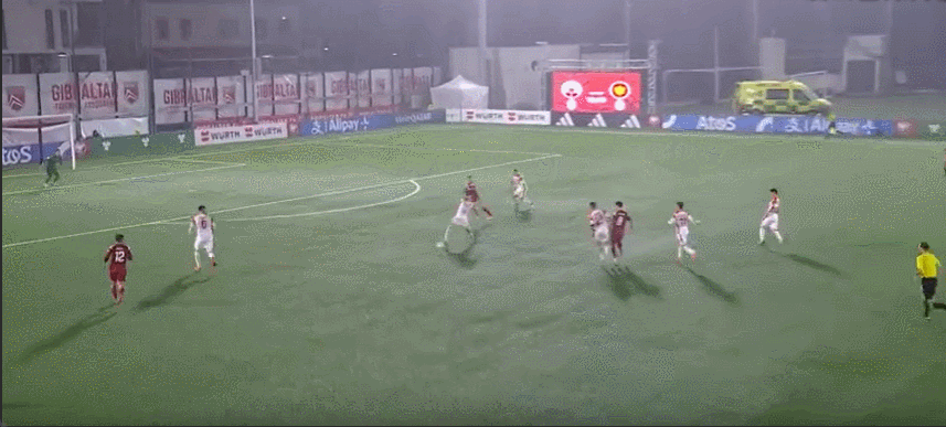 Запасной состав Гибралтара: 1 - Банда, 13 - Лопес, 17 - Оливьеро, 21 - Мулши, 18 - Маклафферти, 9 - Дель Рио, 20 - Винай, 15 - Бент, 16 - Перейра, 10 - К. Морган, 11 - Ричардс, 7 - Бартоло