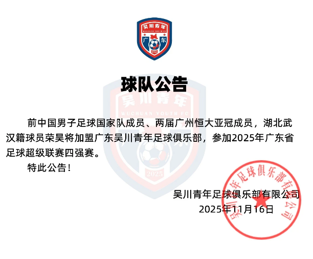 Ронг Хао, бывший член мужской национальной сборной Китая по футболу и двукратный член Лиги чемпионов Гуанчжоу Эвергранд АФК, игрок из Ухани, Хубэй, присоединится к Молодежному футбольному клубу Гуандун Учуань и примет участие в полуфинале Суперлиги провинции Гуандун по футболу 2025 года.
