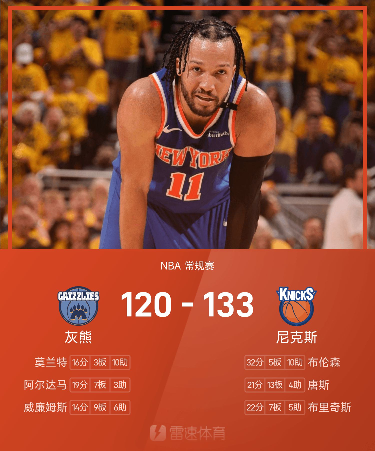 Брунсон набрал 32 очка и 10 передач, что привело хозяев поля "Никс" к победной серии из 7 игр.