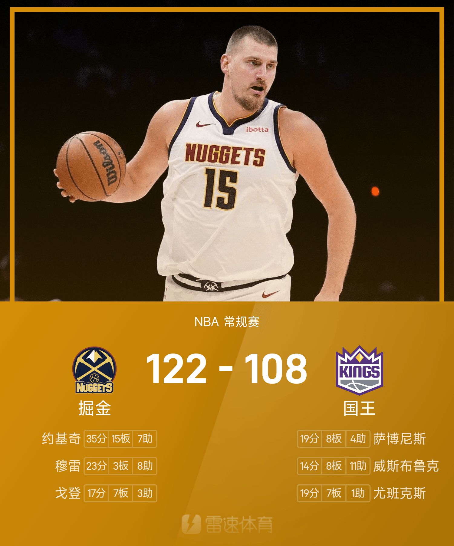Йокич набрал 35 очков, 15 подборов и 7 передач. Уэстбрук безрезультатно оформил квази-трипл-дабл, а «Наггетс» легко одолели «Кингз».